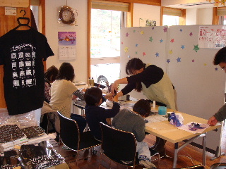 屋内ではトールペイントとクリスマスリース作り、フラワーアレンジメント教室を行いました。